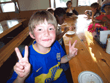 Santi likes eating without a spoon